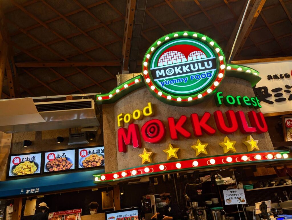 もっくるのフードコートではリーズナブルなお値段でおいしい料理が楽しめます!厨房の目の前には食欲そそる焼き鳥やからあげなんかもあったりします!