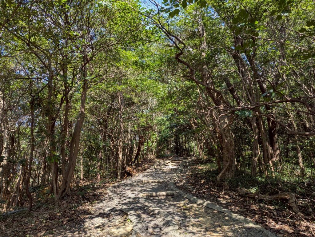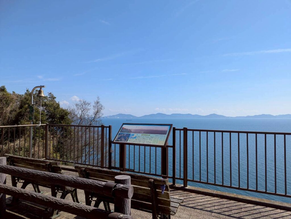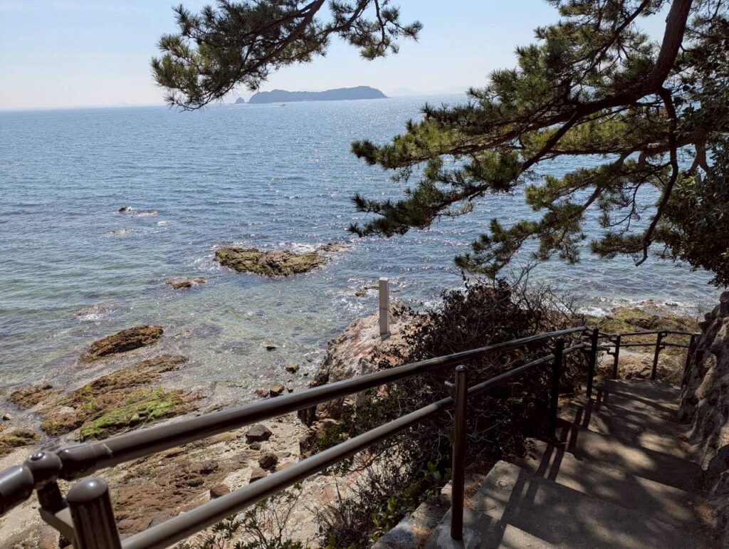 神社の奥を抜け階段を下ると目の前には三河湾が…!そのまま遊歩道を歩き島を一周歩くことが出来ます!