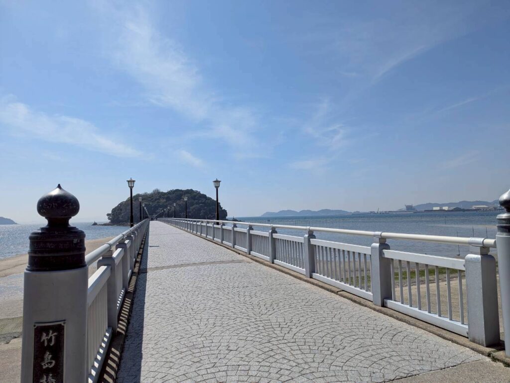 本土と島を結ぶ竹島橋は縁結びの橋と呼ばれカップルに人気です♪: 八百富神社のほかに、宇賀神社、大黒神社、千歳神社、八大龍神社が鎮座し、すべて参拝すると多くの幸せが訪れると言われています。