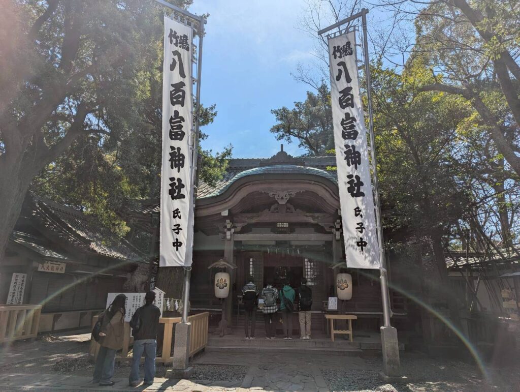 竹島全域が慶大として扱われており、神奈川県の江の島や広島の厳島神社と同じ日本七弁天のうちの一つに数えられています。市杵島姫命が祭り神で琵琶湖の竹生島から勧請されたとされています。