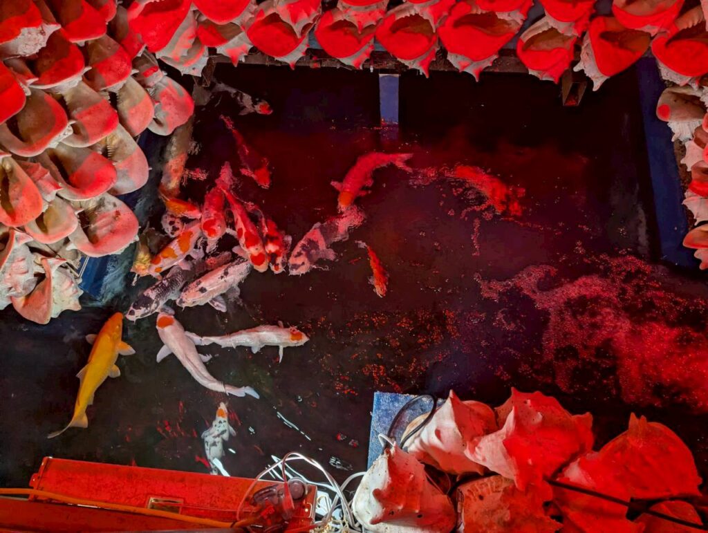 入り口で鯉の餌を受け取り幻想的な館内へGo!