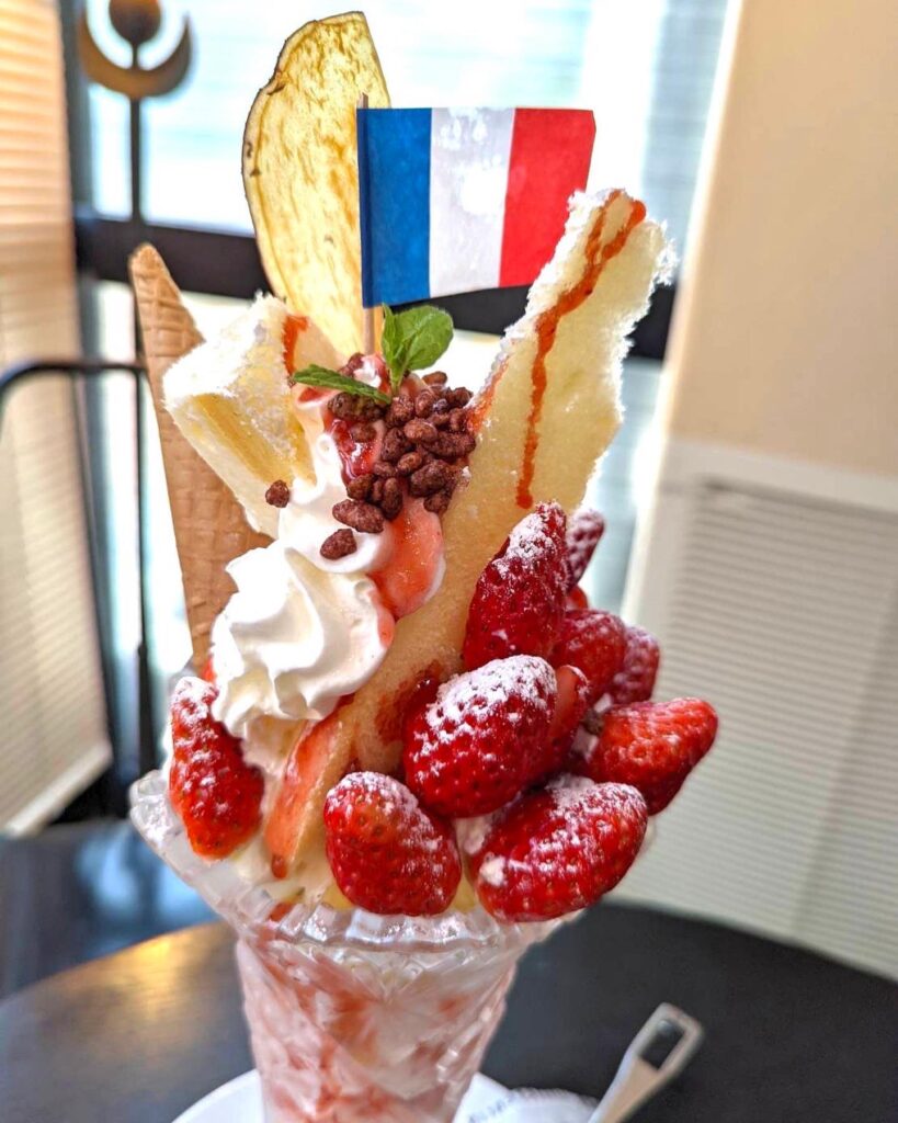 ロコモコやハンバーグ、タコライスなど若い人でも大満足なメニューもあり、とにかくパフェがデカい!!