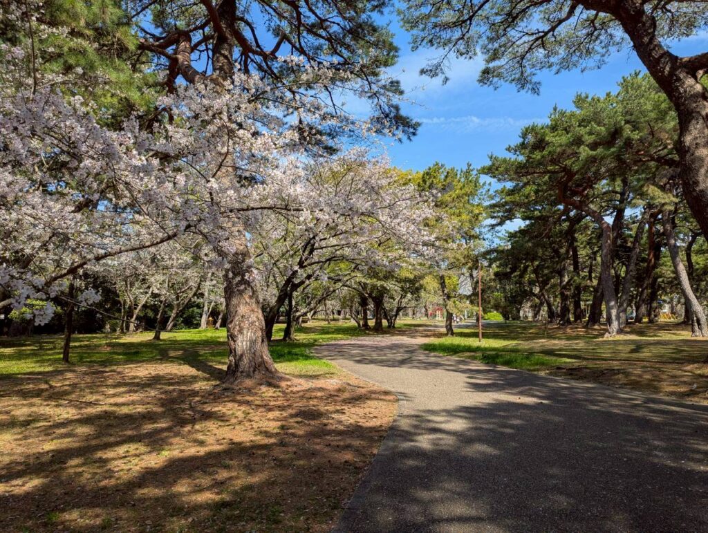 空の青、桜の白、松の緑のコントラストがとても奇麗でした!