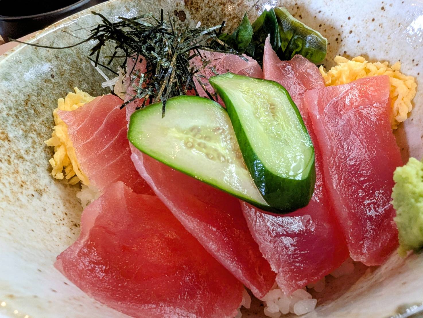 今田原市で最も意気のある海鮮のお店といえば渥美の丼屋まるみ。このお店で最も有名なメニューが「海鮮ミルフィーユ丼」新鮮な海具が何層にもなって敷つめられていて、味だけでなくインスタ映え間違い一品です♪